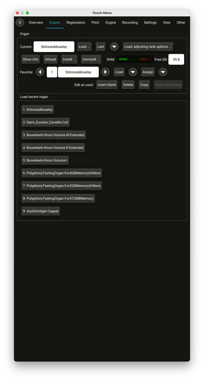 Effortlessly control your combination changes by connecting your MIDI hardware to the Hauptwerk combination system via the easy to use MIDI Learn system. You can also access all of Hauptwerk’s key combination settings through the Touch Menu and activate them by hand using standard computer touch screens or even computer keyboard shortcuts.